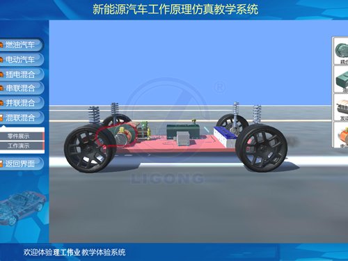 新能源混合動力虛擬仿真教學軟件采用多種汽車3D模型包括傳統燃油汽車、純電動汽車、插電混動、并聯混動、串聯混動、混聯混動等,場景可實現,其中各種混合動力汽車系統可以360度任意旋轉,屬于新能源汽車教學軟件系列。該新能源汽車教學軟件可以讓學生全面了解新能源混合動力系統的工作原理與結構,提高學生的學習興趣。