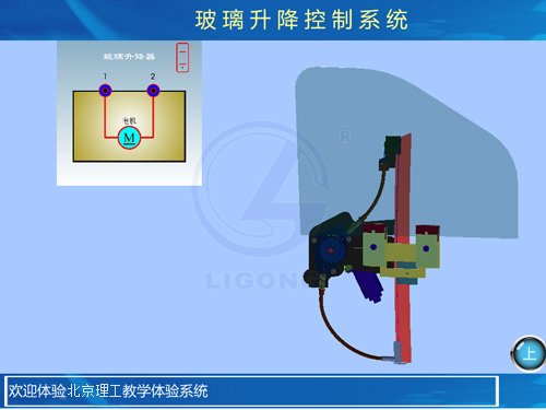 玻璃升降器虛擬仿真教學軟件中的電動機是由雙聯開關按鈕控制,設有升、降、關等三個工作狀態,開關不操縱時自動停在 " 關 " 的位置上。縱電路設有總開關(中央控制)和分開關,兩者線路并聯。在汽車軟件教學中也能完全展現出來,適用于各類院校教學,歡迎定制!
