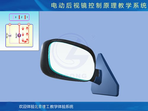 電動后視鏡虛擬仿真教學軟件是以實物與場景相結合研發的汽車教學軟件,該軟件充分展示了他的虛擬拆裝考核、虛擬拆裝實訓、理論考核等功能,適用于各類院校教學,電動后視鏡一般由鏡片、微型直流電動機、驅動器、控制開關等組成。在每個后一片的背后都有兩個可逆電動機,可操縱其上下及左右運動。