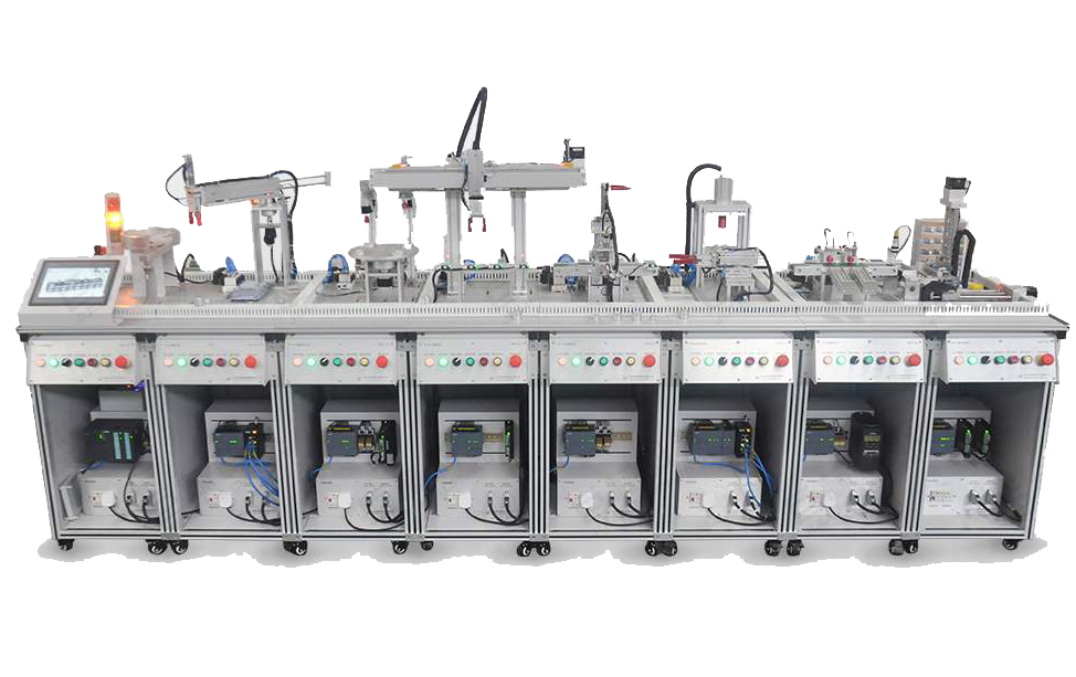 LGJ-RX08模塊化柔性自動化生產(chǎn)實訓(xùn)系統(tǒng)(八站式)是在LGJ-RX06型 模塊化柔性自動化生產(chǎn)實訓(xùn)系統(tǒng)(六站式)基礎(chǔ)上拓展為復(fù)雜的工件裝置站與自動沖壓站,工作站點達(dá)到 8個之多進(jìn)一步加深了對控制要求。LGJ-SJ65綜合了實際工業(yè)生產(chǎn)中大量應(yīng)用到的復(fù)雜控制過程的教學(xué)培訓(xùn)裝置,根據(jù)現(xiàn)代生產(chǎn)物流系統(tǒng)發(fā)展和未來趨勢而專門設(shè)計,它以培養(yǎng)學(xué)生專業(yè)知識應(yīng)用能力、綜合實踐能力、創(chuàng)新能力為主要目標(biāo)。
