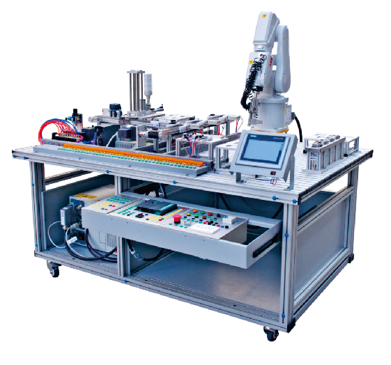 該平臺各組件均安裝在型材桌面上,機械結構、電氣控制回路、執行機構相對獨立,采用工業標準件設計。通過此平臺可以進行機械組裝、電氣線路設計與接線、PLC編程與調試、工業機器人編程與調試等方面訓練。