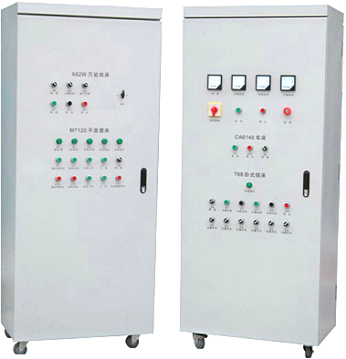 1.LG-JCG06型 機床電氣技能考核實驗裝置采用標準配電柜為主體柜,充分利用該柜雙面空間位置,設有一臺銑床、一臺車床、一臺鏜床、一臺磨床,該配電柜將四種機床電氣線路合為一體,各種機床占地面積小,外形美觀;