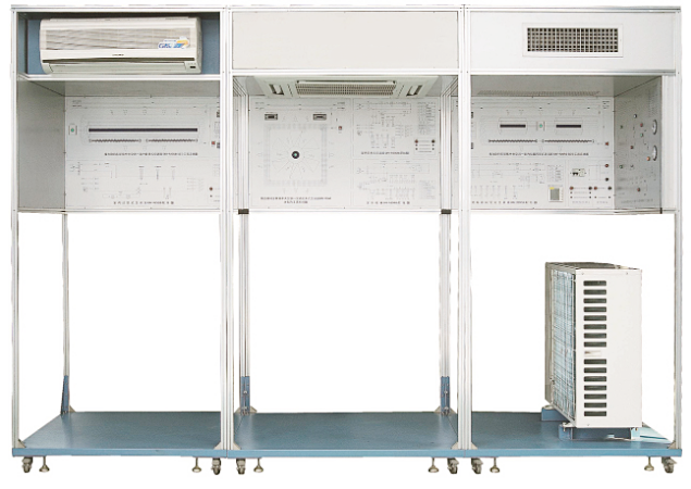 1.裝置底盤采用加強鈑金結構設計,框架采用鋁型材結合鋁塑板封面組成。有室外機模塊、天井式室內機模塊、掛壁式室內機模塊、風機盤室內機模塊四套模塊組成一個完整的家用中央空調系統。