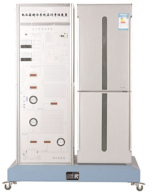 3.實訓裝置采用柜式結構,鋁合金型材框架,由家用雙門智能電冰箱、測量儀表、設故系統、保護系統以及直冷式電冰箱制冷系統流程圖等組成。