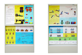 并聯組合:齒輪連桿曲線、實驗給定軌跡的機構2件、實驗變速運動的機構、同軸槽輪機構,誤差校正機構、電動馬游藝機裝置。