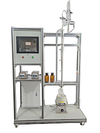 玻璃精餾塔、保溫塔、冷凝器、玻璃塔釜、加熱器、蠕動泵、U型壓力計、溫度傳感器、中央處理器、觸摸屏、高品質鋁合金型材框架。